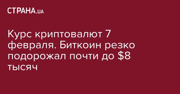 Курс криптовалют 7 февраля. Биткоин резко подорожал почти до $8 тысяч