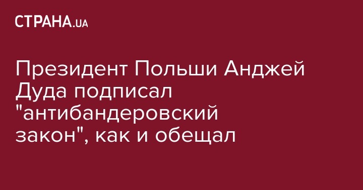 Президент Польши Анджей Дуда, как и обещал, подписал изменения в закон о польском Институте национальной памяти, который не понравился Израилю, США и Украине. Об этом сообщил его пресс-секретарь Кшиштоф Лапинский, передает ВВС.