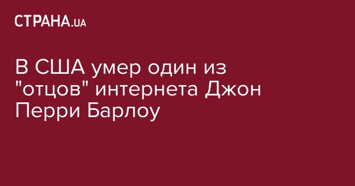 На 71 году жизни умер основатель компании Electronic Frontier Foundation Джон Перри Барлоу, который был одним из основоположников современного интернета.