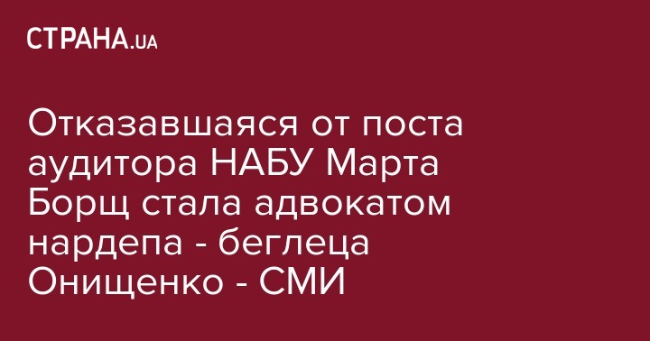 Бывший обвинитель экс-премьера Павла Лазаренко Марта Борщ, которая ранее отказалась от должности аудитора НАБУ, стала адвокатом депутата-беглеца Александра Онищенко.