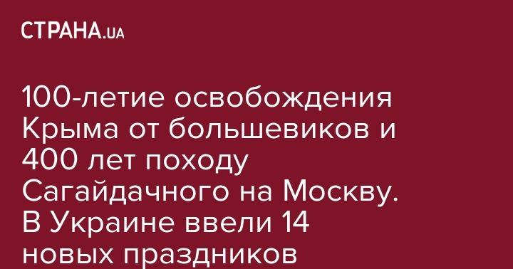 В Украине ввели официальные празднования целого ряда исторических событий, в том числе 100-летия со дня провозглашения независимости Украинской Народной Республики (УНР) Четвертым Универсалом Центральной Рады, боя под Крутами и провозглашения Гетманата Павла Скоропадского.