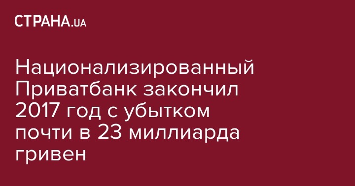 В 2017 году Приватбанк получил убытки в размере 22,966 млрд грн. По состоянию на 1 января 2018 года непокрытый убыток прошлых лет составил 176,029 млрд грн, а капитал - 25,608 млрд грн.