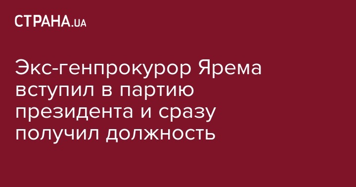 Экс-генпрокурор Ярема вступил в партию президента и сразу получил должность