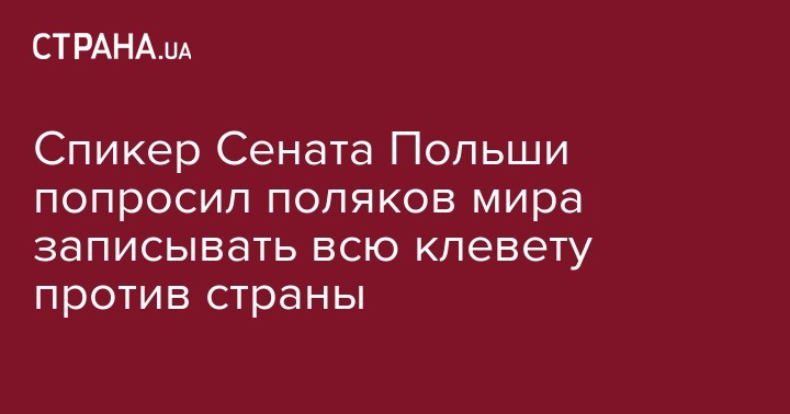 Спикер Сената Польши попросил поляков мира записывать всю клевету против страны
