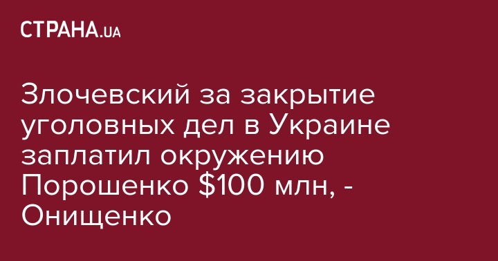 "И мне Злочевский жаловался: "Ты представляешь, вот Кононенко летает, я его прошу, там деньги получают, ничего не делают, им выгодно, чтобы я сидел где-то вдалеке и по миллиончику в месяц с меня брать и не пускать меня. Я хочу глобально все решить, чтобы дело закрыли, чтобы я мог нормально вернуться. Поэтому я предлагаю им большую сумму. $50 млн, я считаю, очень хорошо"- процитировал Злочевского Онищенко.