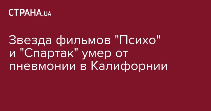 Американский актер Джон Гэвин, сыгравший в знаменитом триллере "Психо" и исторической драме "Спартак", умер в возрасте 86 лет. Об этом сообщает TMZ.