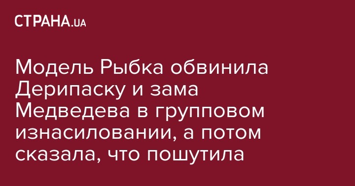 Белорусская модель Настя Рыбка обвинила олигарха Олега Дерипаску и вице-премьера правительства РФ Сергея Приходько в групповом изнасиловании на яхте и потребовала, чтобы олигарх женился на ней.