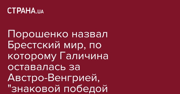 К 100-летию заключения Брестского мира президент Порошенко заявил, что "это одна из знаковых побед украинской дипломатии".