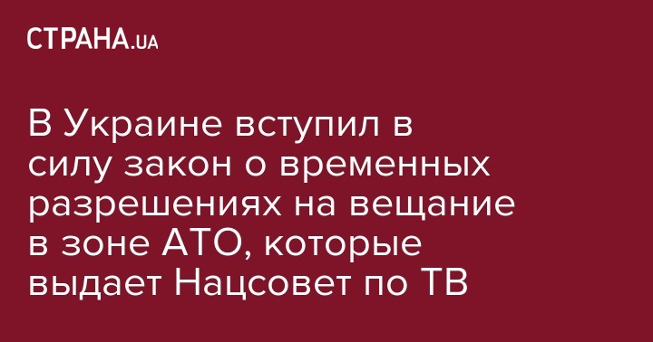 В Украине вступил в силу закон № 2244-VIII о временных разрешениях на вещание в зоне АТО. Месяц назад документ опубликовали в "Голосе Украины".