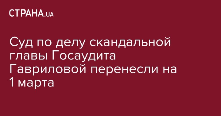 Судебное заседание по апелляционной жалобе председателя Госаудитслужбы Лидии Гавриловой, которую подозревают в незаконном обогащении на сумму 10 миллионов гривен, перенесли на 1 марта.