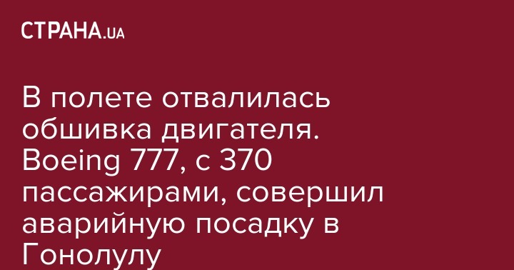 В полете отвалилась обшивка двигателя. Boeing 777, с 370 пассажирами, совершил аварийную посадку в Гонолулу