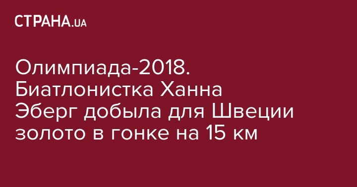 Сегодня, 15 февраля на Олимпиаде - 2018 прошла индивидуальная гонка на 15 километров для биатлонисток. Олимпийской чемпионкой стала шведская спортсменка Ханна Эберг. Она преодолела дистанцию за 41 минуту 7,2 секунды, и не допустила ни одного промаха на четырех огневых рубежах.
