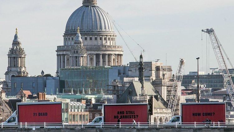 Таким образом британские активисты решили привлечь внимание к расследованию пожара в многоэтажке Grenfell Tower на западе Лондона.