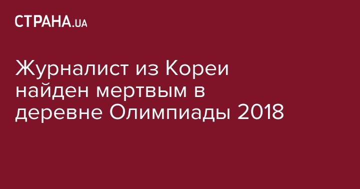 Представитель оргкомитета Олимпиады в Пхенчхане Сон Пэк Ю сообщил, что в одной из комнат медиа-деревни, где проживают аккредитованные на Играх журналисты, был найден мертвым корейский журналист. Об этом сообщает Yonhap.