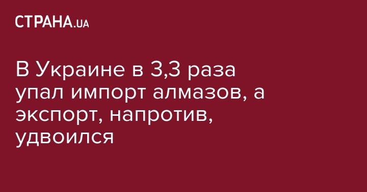 За 2017 год в Украину было завезено алмазов на $2,7 млн. Этот показатель в 3,3 раза меньше, чем за позапрошлый, когда Украина закупила алмазов на $8,96 млн.