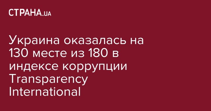 В рейтинге "Индекс восприятия коррупции" Украина заняла 130-е место из 180 стран.