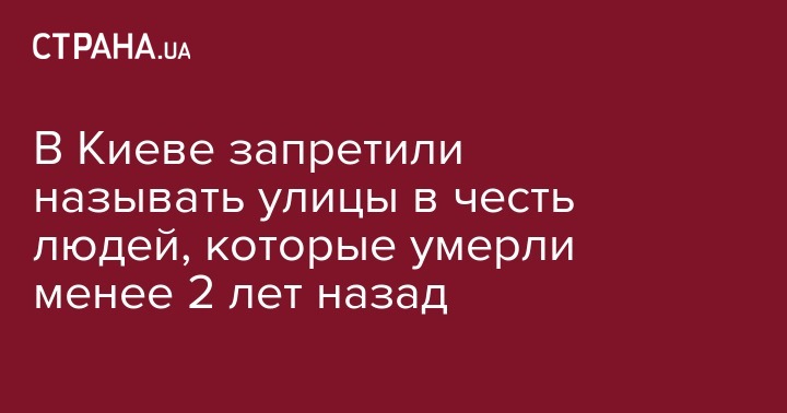 В Киеве запретили называть улицы в честь людей, которые умерли менее 2 лет назад