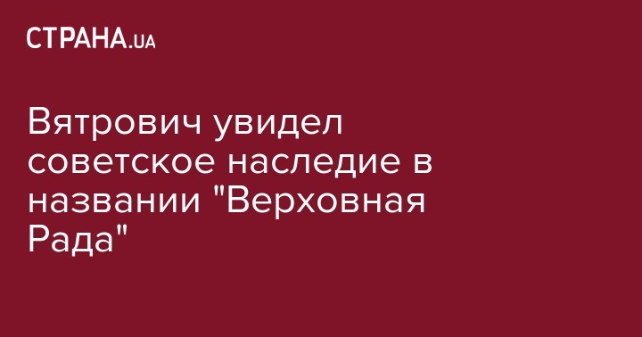 Директор Института нацпамяти Владимир Вятрович заявил, что название "Верховная Рада Украины" – это советское наследие.
