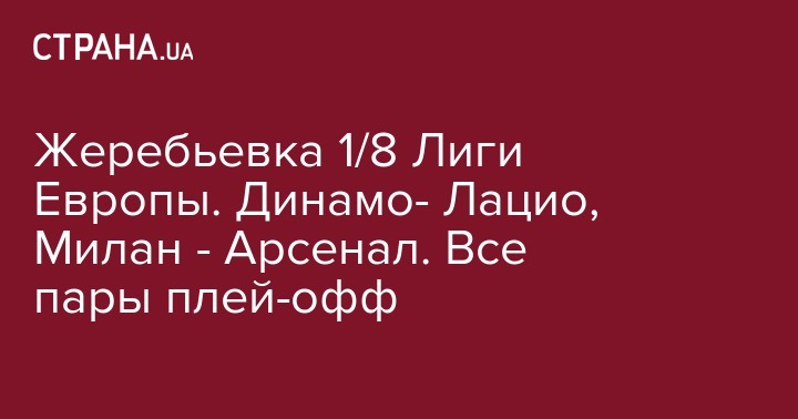 Жеребьевка 1/8 Лиги Европы. Динамо- Лацио, Милан - Арсенал. Все пары плей-офф