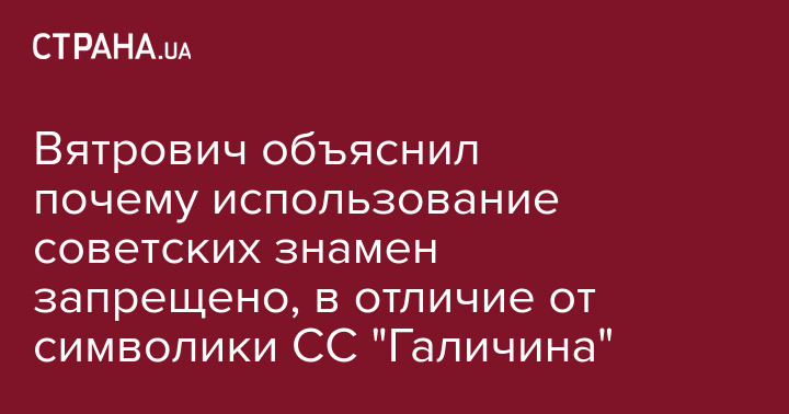 Любопытно, что к символике, которую использовали войска нацисткой Германии Вятрович куда более терпим. Ранее, отвечая на запрос "Страны", глава Института национальной памяти заявил, что символика дивизии СС "Галичина" не подпадает под закон о запрете пропаганды коммунизма и нацизма.