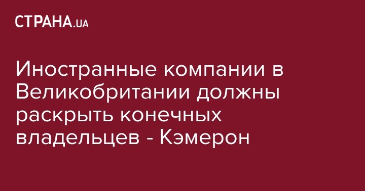 Иностранные компании в Великобритании должны раскрыть конечных владельцев - Кэмерон