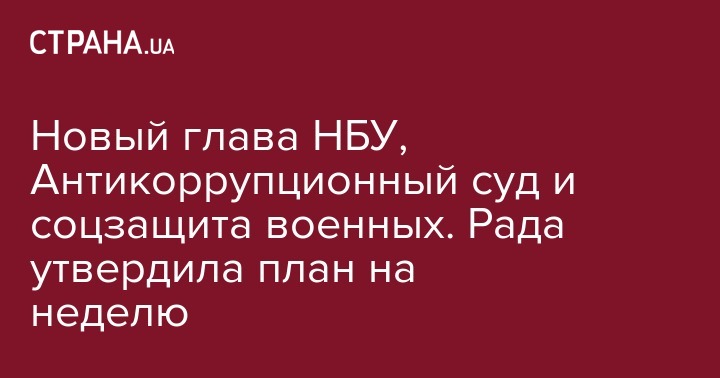 Верховная Рада на этой неделе может назначить нового главу Национального банка. Соответствующий вопрос внесен в недельную повестку парламента
