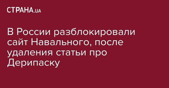 В России разблокировали сайт Навального, после удаления статьи про Дерипаску