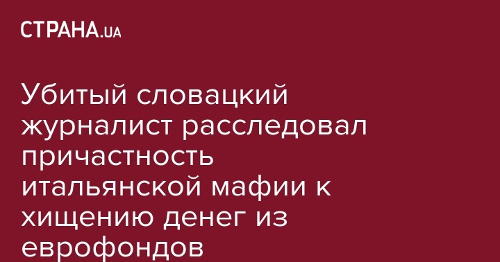 Убитый в Словакии 27-летний журналист Ян Кучак расследовал мошенничества с деньгами европейских фондов и возможную причастность к этому итальянской мафии из клана "Ндрангета".