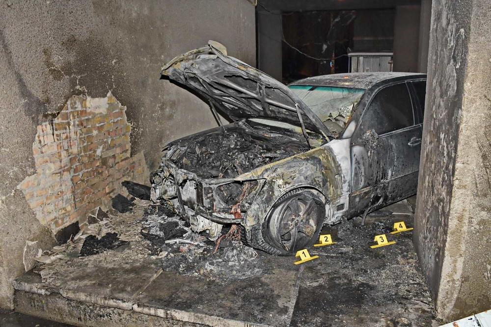 Авто вспыхнуло примерно в 23:40. Двое мужчин бросили под припаркованный автомобиль сумку и скрылись.
