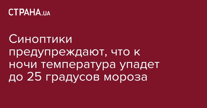 Синоптики предупреждают, что к ночи температура упадет до 25 градусов мороза