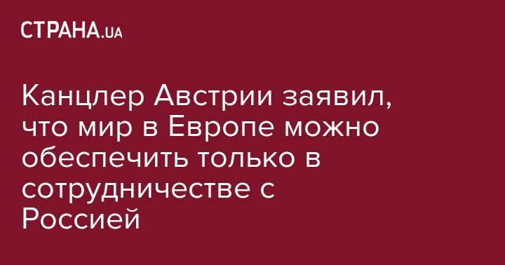 Канцлер Австрии заявил, что мир в Европе можно обеспечить только в сотрудничестве с Россией