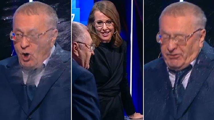 Кандидат в президенты России Ксения Собчак облила водой лидера ЛДПР Владимира Жириновского во время дебатов на канале "Россия 1". Об этом сообщает "РИА Новости".