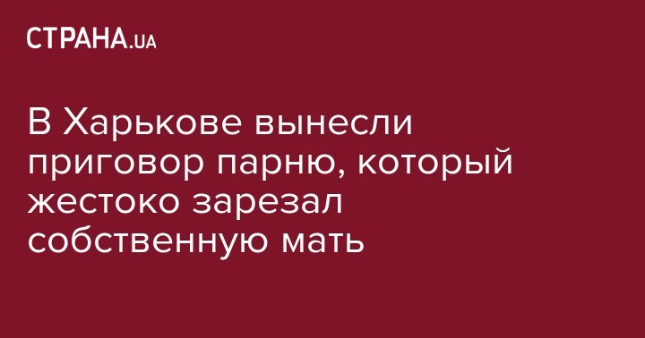 Киевский районный суд Харькова приговорил сына, который убил свою мать, к 8 годам лишения свободы. Он признан вменяемым и виновным по статье 115 УК Украины ("убийство").
