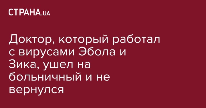Доктор, который работал с вирусами Эбола и Зика, ушел на больничный и не вернулся
