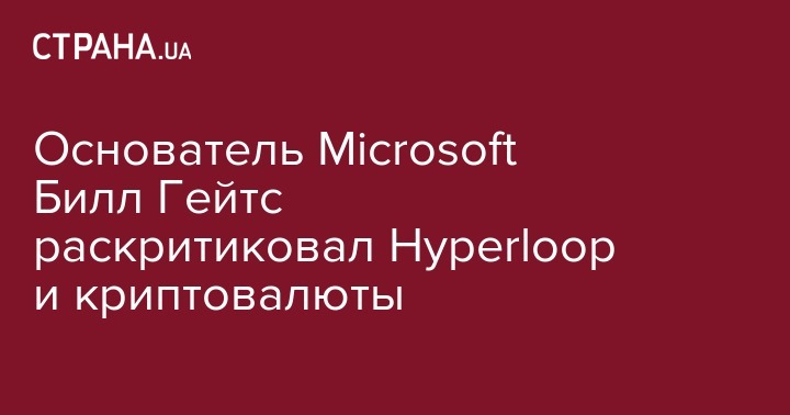 Один из богатейших людей планеты, основатель Microsoft Билл Гейтс раскритиковал Hyperloop и криптовалюты. Он высказался во время общения с пользователями сайта Reddit.