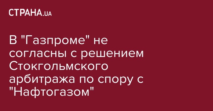 В "Газпроме" не согласны с решением Стокгольмского арбитража по спору с "Нафтогазом"