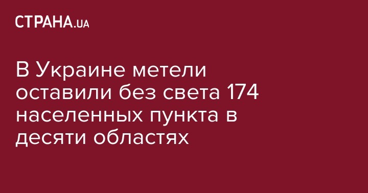 "В результате осложнения погодных условий (сильный снег, порывы ветра) в результате срабатывания автоматической системы защиты ЛЭП обесточены 174 населенных пункта в 10 областях, а именно: Донецкой - 42, Черкасской - 23, Николаевской - 23, Одесской - 20, Днепропетровской - 16, Харьковской - 15, Херсонской - 13, Запорожской - 9, Сумской - 8 и Киевской - 5", – говорится в сообщении.