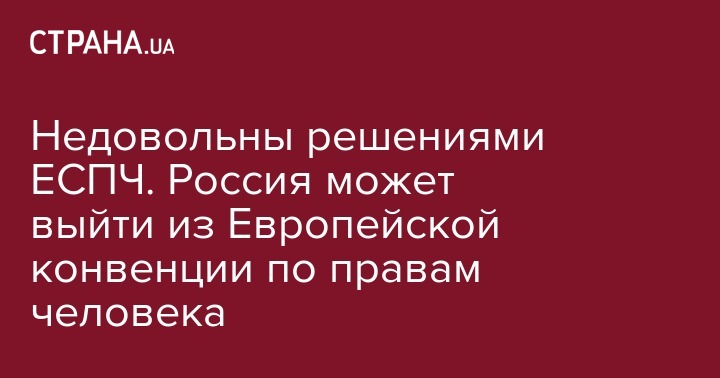"Российские власти изучают возможность денонсации Европейской конвенции о защите прав человека и основных свобод и прекращения сотрудничества с Европейским судом по правам человека (ЕСПЧ) в случае, если нынешняя линия суда, в результате которой появляются направленные против интересов России решения ЕСПЧ, не будет скорректирована", - сказали источники.