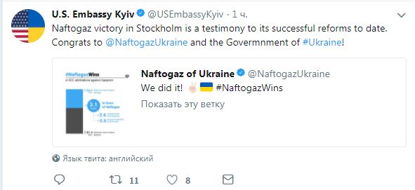 Победа "Нафтогаза" в стокгольмском арбитраже в споре с "Газпромом" доказывает успешность реформ, проводимых в украинской компании.