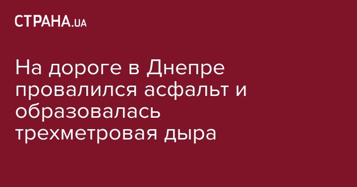 На дороге в Днепре провалился асфальт и образовалась трехметровая дыра