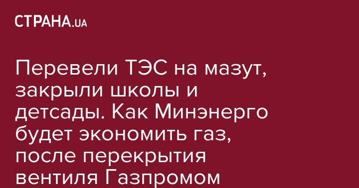 Перевели ТЭС на мазут, закрыли школы и детсады. Как Минэнерго будет экономить газ, после перекрытия вентиля Газпромом