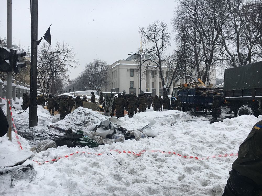 Как сообщала "Страна", в Киеве в субботу утром началась зачистка МихоМайдана под Верховной Радой. Задержаны все, кто был в палаточном городке называют цифру от 70 до 100 человек, шесть полицейских получили ранения.