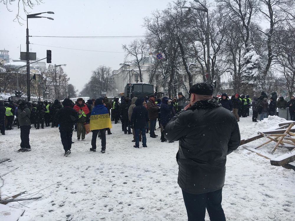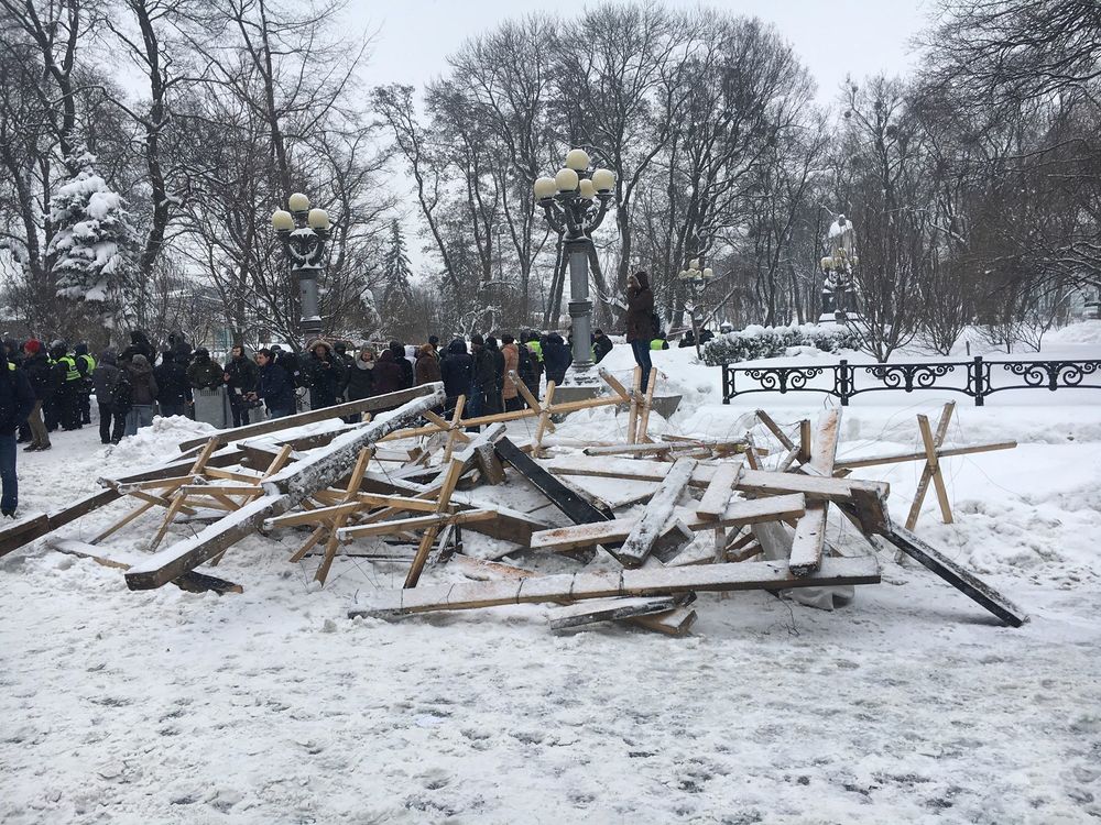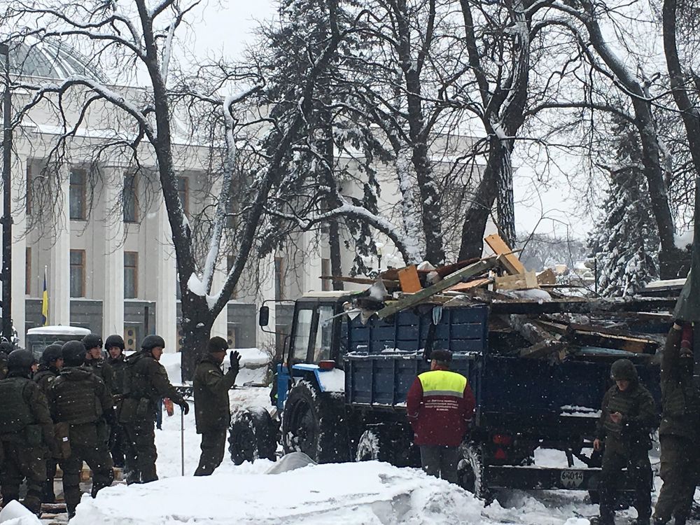 Митингующих под Радой меньше, чем журналистов. Коммунальщики вывозят остатки палаточного городка.