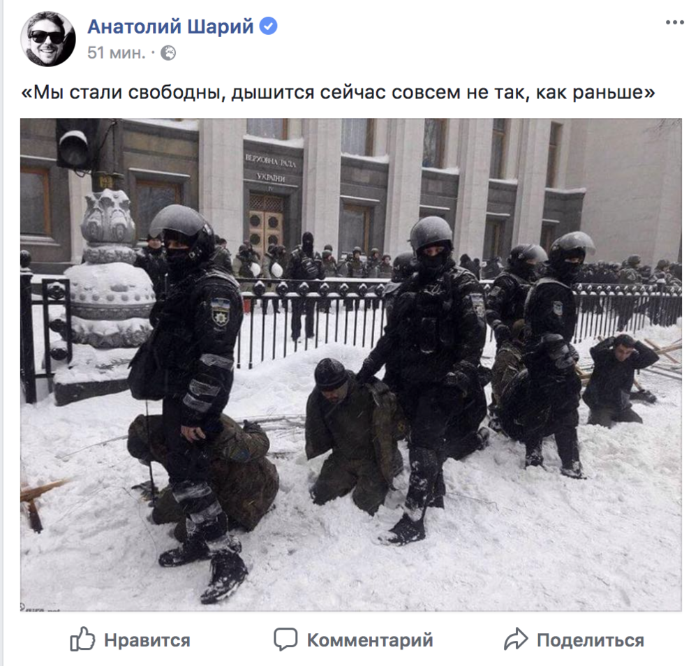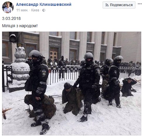 Как отмечают пользователи, "милиция с народом". Тем самым намекая, что методы у Нацполиции остались те же, что и у милиции при зачистке Майдана в 2013 году.