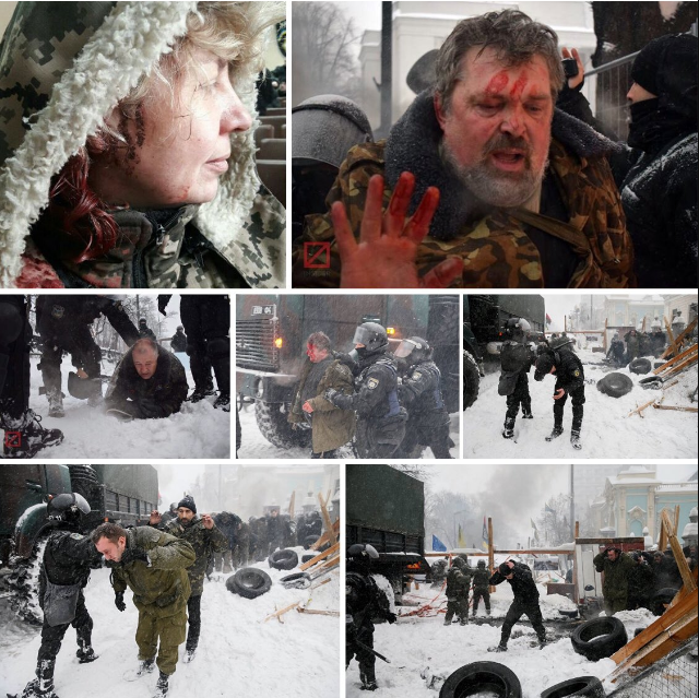 Сегодня с 7 часов утра началась зачистка МихоМайдана. Она проходила в крайне жестком ключе – активистов били дубинками, ставили на колени и десятками грузили в автозаки. Фото с избитыми людьми заполонили сеть.