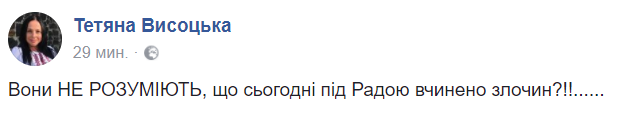 "Они не понимают, что сегодня под Радой совершено преступление?" – пишет журналистка Татьяна Высоцкая, комментируя заявление главы МВД.