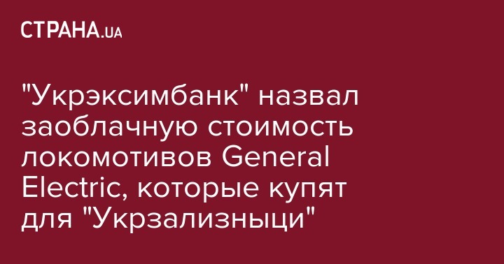 Стала известна стоимость американских локомотивов производства General Electric, которые купят для нужд "Укрзализныци". Отчет о заключении договора между ПАО "Государственный экспортно-импортный банк Украины" и ООО "Джии Украины" о поставке локомотивов на 140,4 млн грн опубликован в системе "Прозоро".