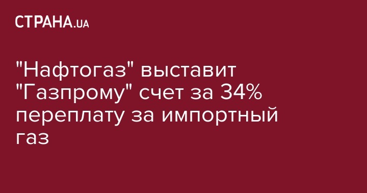 "Нафтогаз" выставит "Газпрому" счет за 34% переплату за импортный газ