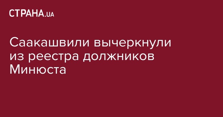 Министерство юстиции исключило лидера "Руха новых сил" Михаила Саакашвили из Единого реестра должников, куда он попал за неуплату 320 гривен судебного сбора по делу о незаконном пересечении границы 10 сентября прошлого года в пункте пропуска "Шегини". Об этом свидетельствуют данные реестра, сообщают "Украинские новости".