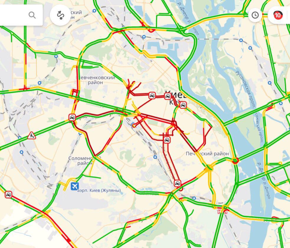 В частности, стоит бульвар Леси Украинки и Дружбы Народов в обе стороны, заторы на Большой Васильковской, Хмельницкого, Владимирской, Сечевых Стрельцов, Вячеслава Черновола, Бульварно-Кудрявской.